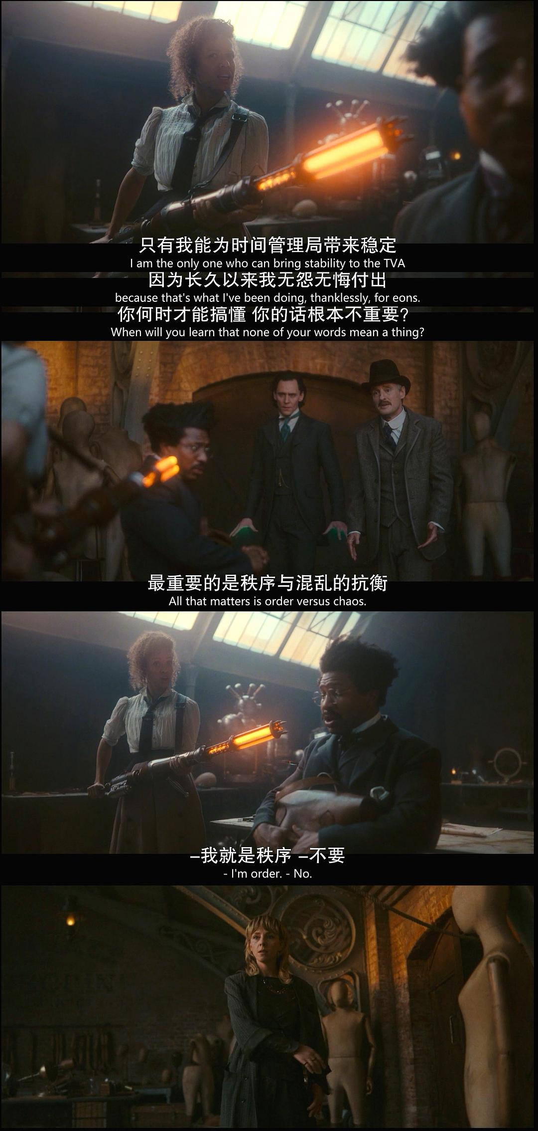 nn三、秩序和混沌nn这是“洛基”很重要的主题,在这里直截了当地表现了,洛斯蕾尔大声宣称“i'm order”,然后希尔维一波推翻所有人闪亮登场,嗯,“洛基”是“chaos”。