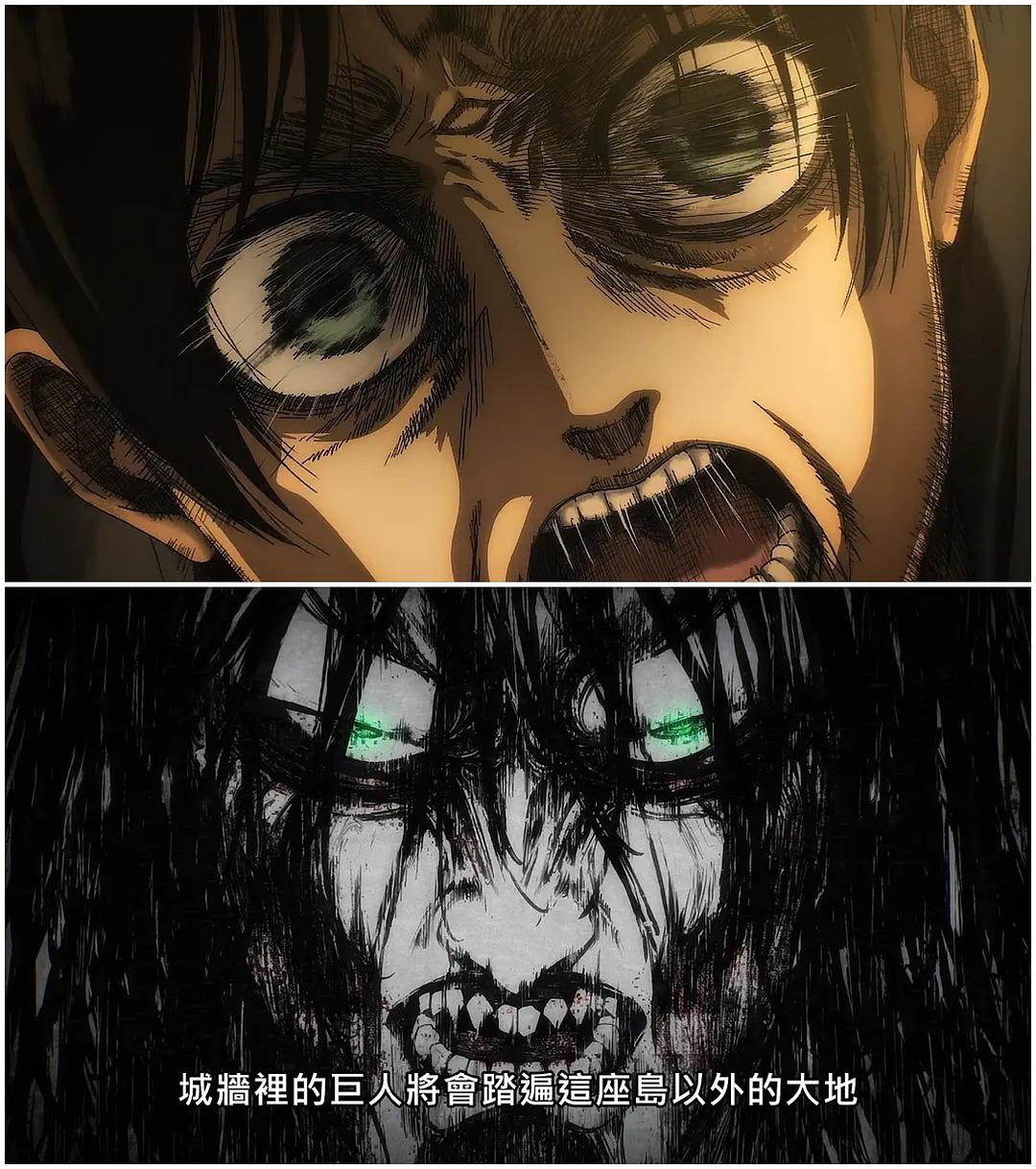 同样是被迫裹挟进战争的孩子,无辜婴儿跟第一季的艾伦形成了某种意义上的镜像对位,深受其害的艾伦·耶格尔无差别对所有人作为他踩踏的对象,艾伦最终完成了从受害者到施暴者的身份转换。n曾经驱逐巨人的少年,如今却成为被人类驱逐的巨人;曾经为人类献出心脏的少年,如今却要夺走人类的一切;曾经追求自由的少年,如今是最矫枉过正的奴隶。