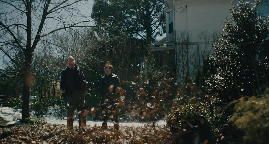飞舞的叶子,吹落叶这种琐事换了个视角,再次体现导演的灵感和对生活细致的观察。暗示了男主心情很好,又为接下来要发生的冲突起到了先扬后抑的作用,却不刻意。