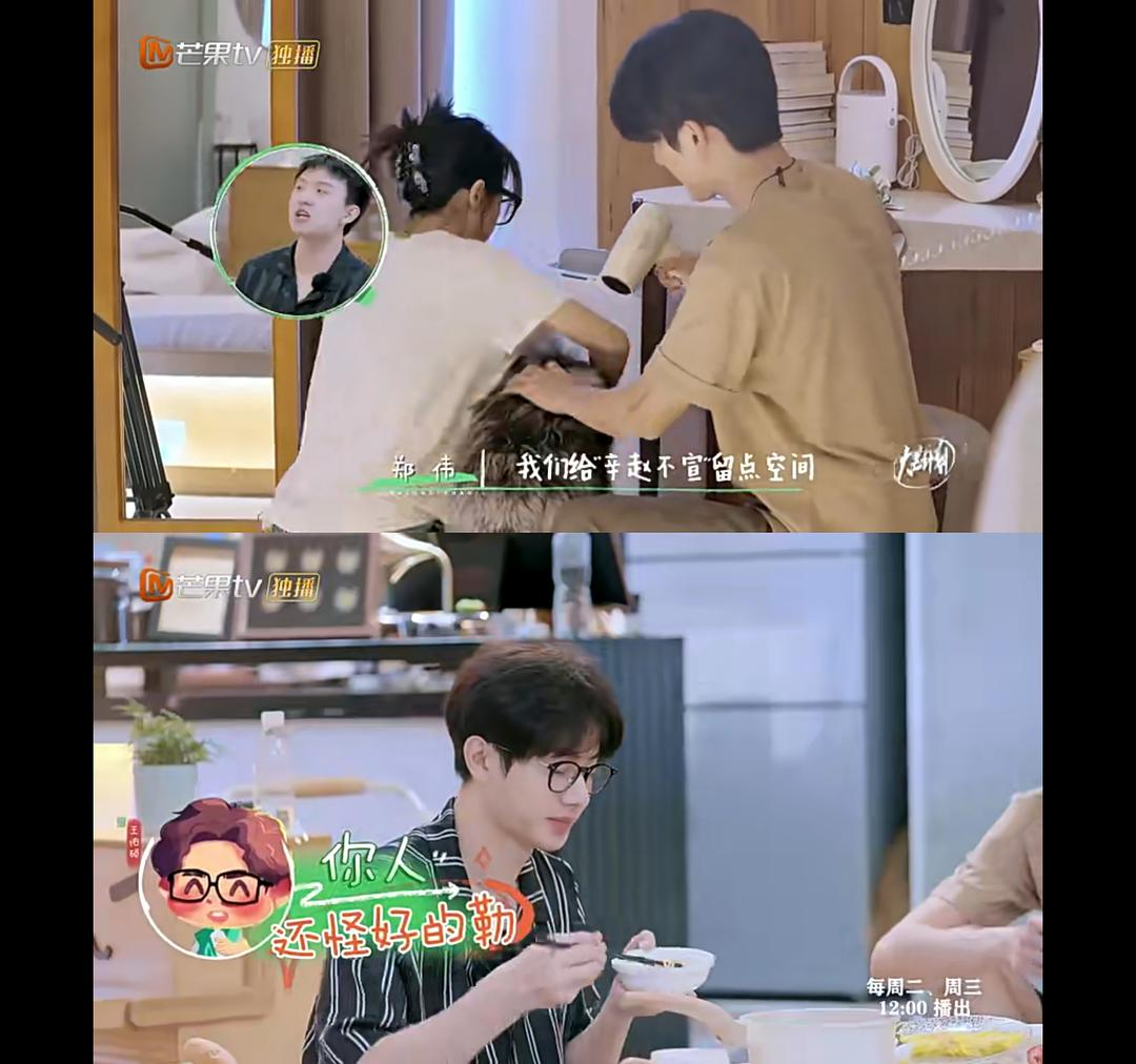 而且……救命!辛赵的氛围这是什么现偶画风?借用大老师一句话,我本来不爱看这种故事,但是现在我看进去了!感觉随便剪剪就是一部偶像剧了,天知道我平时有多嫌弃这种光知道撒糖没有狗血剧情的偶像剧桥段来着【喂!这是什么清新自然大方坦荡的现偶剧情啊?!给民大吹毛那段去掉综艺花字再调个滤镜加个BGM再偶尔放个慢动作就可以冒充偶像剧剧情了吧?(虽然实际上两个人都没“民大他爹”一个人的技术好吧