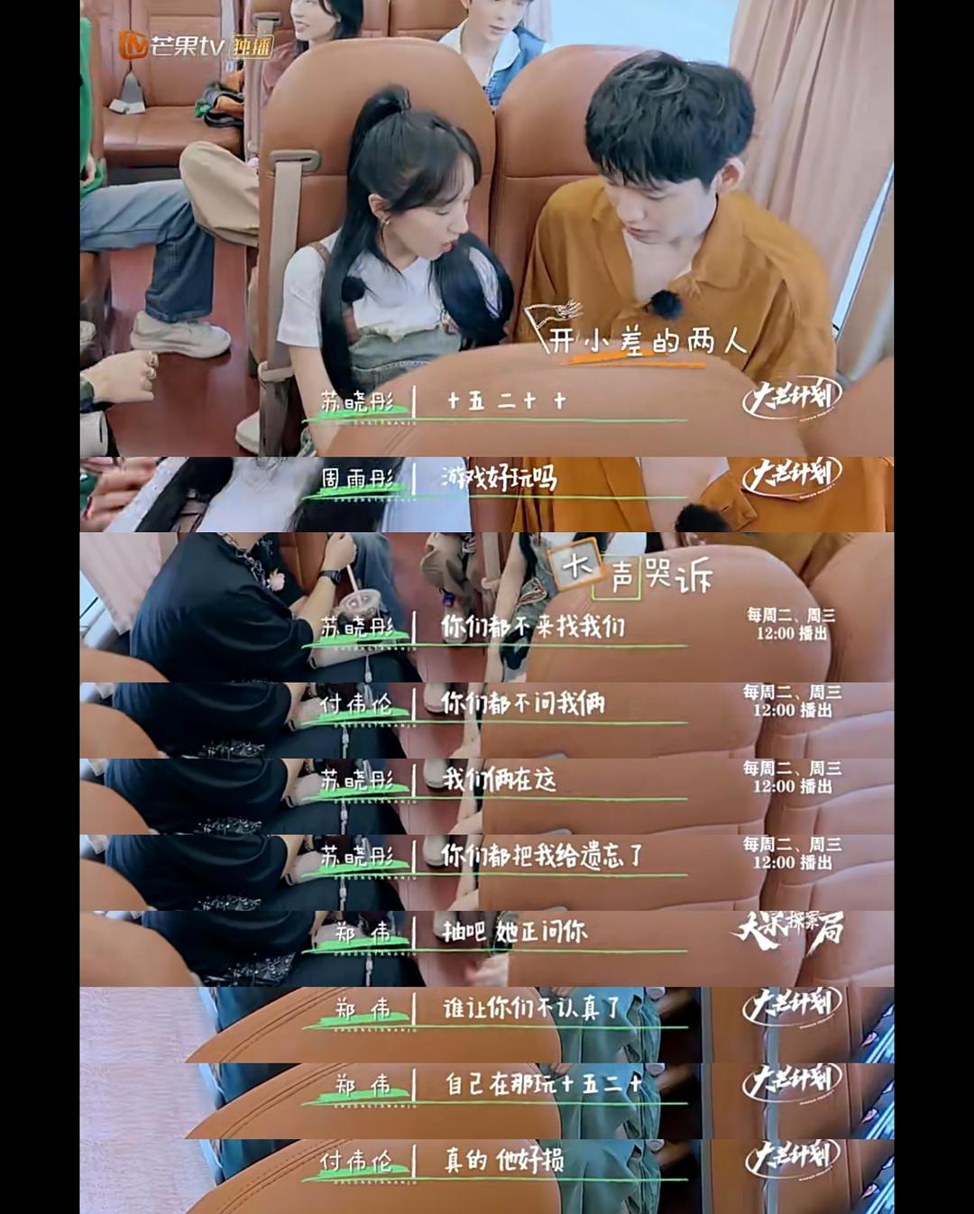 王佑硕当斋长,任务之一为“张新成和周雨彤假装吵架,看大家反应”,莫名其妙的吵架,大家都是先劝,苏晓彤都有点要生气了,付伟伦急得哭唧唧,王佑硕即使知道是假的,可还是笑着笑着就哭了。朋友离别在即,控制不住的情绪~