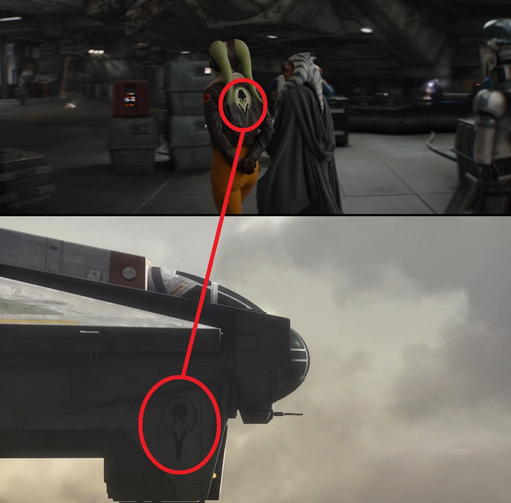前往河外星系前,阿索卡对赫拉说:“Hera, I'll find them. I promise.”无独有偶,在《帝国反击战》里,兰多驾驶“千年隼号”离开义军舰队时,对莱娅说了类似的话:“Princess, we'll find Han. I promise.”作为回应,赫拉与卢克都说了:“愿原力与你同在。”