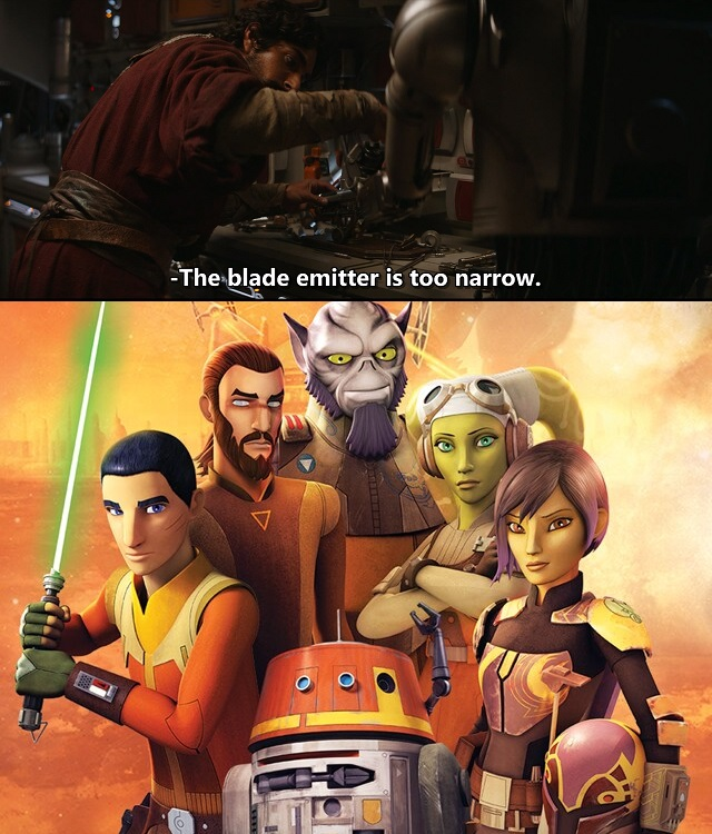 官方吐槽最为致命。从2014年《义军崛起》刚开播起,国内外星战迷就都认为《义军崛起》里的光剑剑刃太细了。