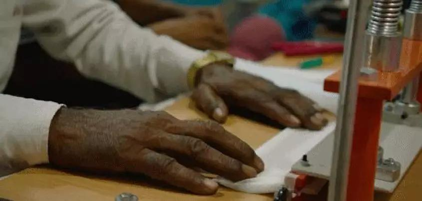 [月事革命]里的这场革命,正是女工们用自己的双手,制造低成本的卫生巾,力图让所有人都能用得起卫生巾。
