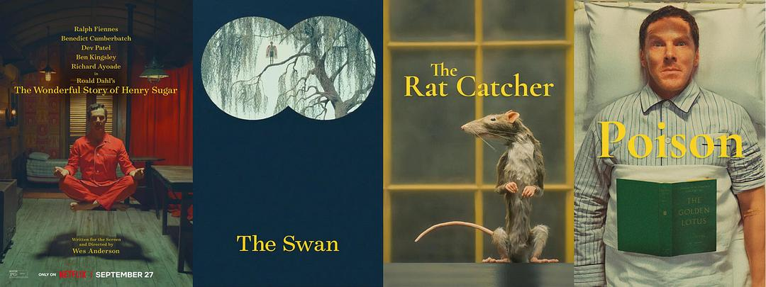 四十三年,十七部电影,韦斯·安德森终于用这部四合一的短片合集抵达了他创作光谱的极点。这部合集包括《亨利·休格的神奇故事》《天鹅》《捕鼠人》《毒》四部短片,非但不是他宏大版图上的边角料,反而是一块密度惊人的微型杰作。它清晰、冷冽、精准,却又在精密尺度的狭隙间,逸出缕缕神性的暖光。安德森与达尔,一位是当代最执迷于形式控制的导演,另一位是二十世纪最擅长在童话糖衣下包裹残忍世相的作家,他们的相遇不是互补,而是将各自的特质推向极致,创造出一个“纯真寓言+复杂元叙事”的奇异果。