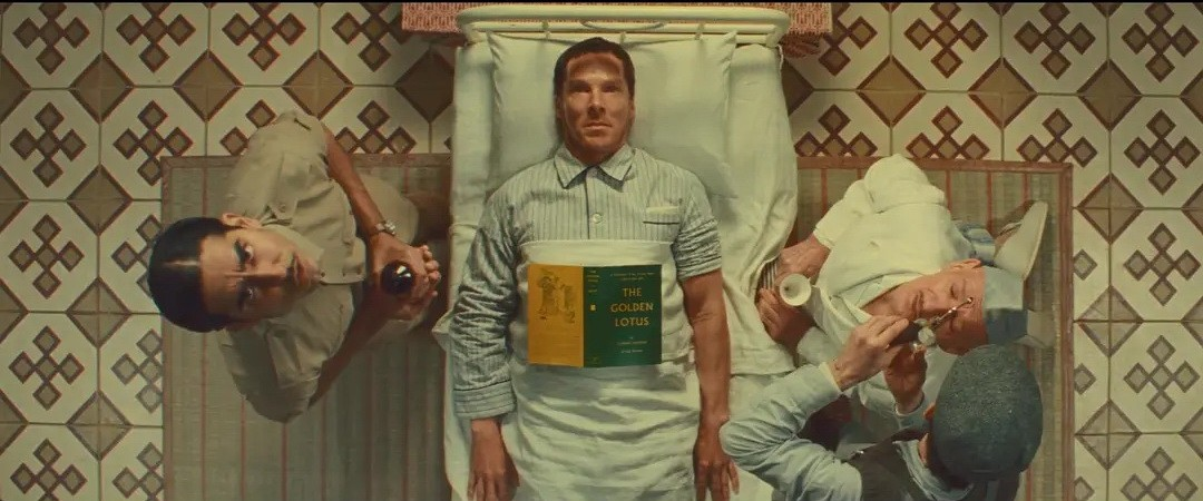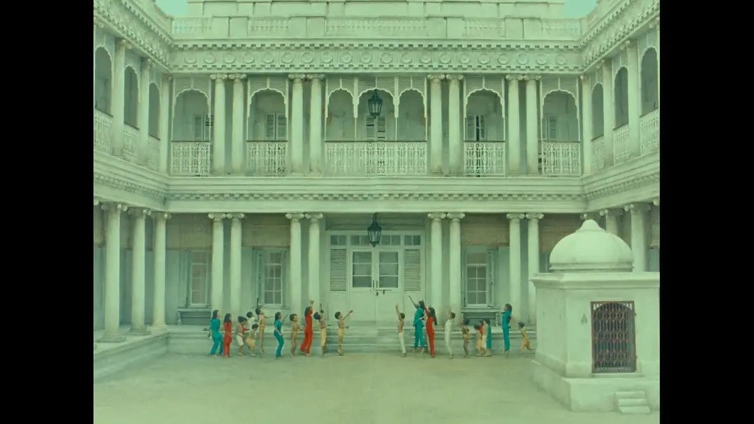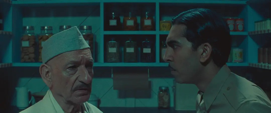 影片在形式上是一座透明的叙事离心机。拉尔夫·费因斯扮演的达尔开宗明义:“我要讲一个故事……”由此,叙述权如击鼓传花般在角色间飞速传递:达尔讲述亨利·休格,休格翻阅查特吉医生日记,医生转述伊姆达德·汗的奇迹,汗又复述瑜伽士的教诲。安德森并未“改编”达尔,他几乎是“上演”了达尔的原著文本,演员们直视镜头,以电报般迅疾的语速吐出大段描述性旁白,甚至机械地插入“我说”、“他答道”这样的转述标记。我们观看的,不是一个赌徒改过自新的故事,而是“故事如何被讲述、记录、阅读、并最终改变讲述者与读者”的完整生态链。每一个画框都坦诚地宣告自己是舞台,机关布景滑动,背景是粗糙的绘景片,舞台工作人员在镜头内穿梭。这种彻底的“暴露”,反而因其纯粹的游戏精神和严谨的内部逻辑,构建了比任何拟真场景都更令人信服的现实——一种属于故事与想象力的现实。