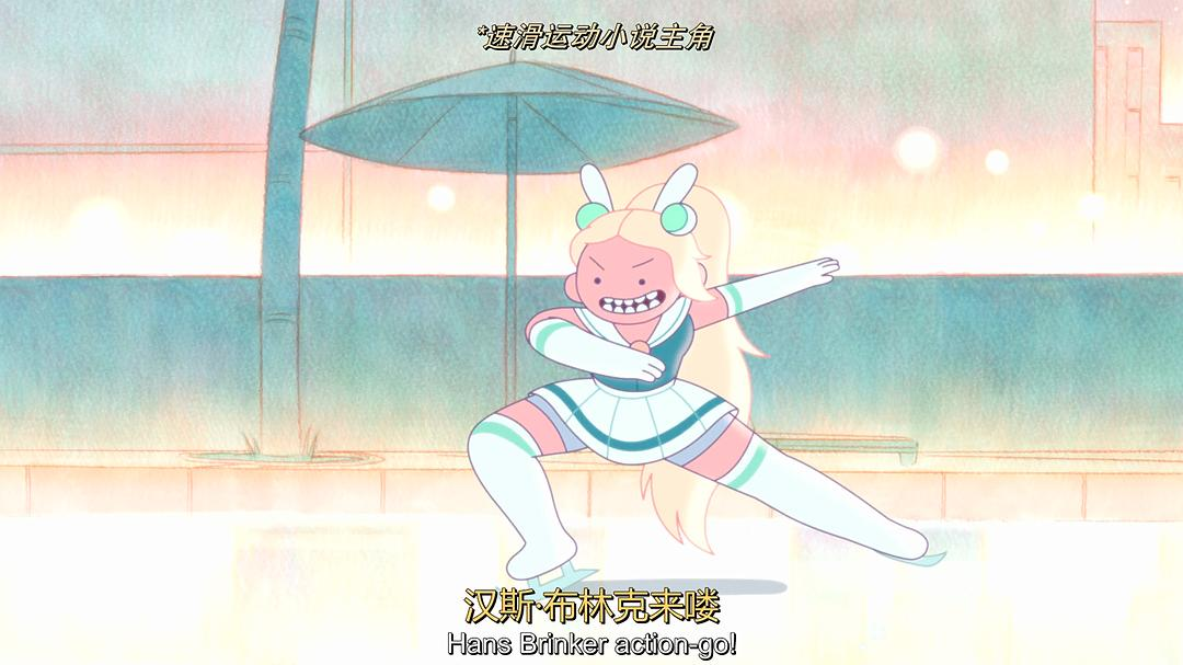 梦里的花滑造型是致敬Sailor Moon(美少女战士),而AT的第一个性转集(Fionna and Cake S03E09)里面,Fionna的造型也和Sailor Moon有关