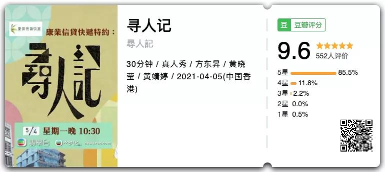 它创造了近10年来TVB非戏剧类的口碑巅峰,豆瓣上也被评出了9.6的高分。