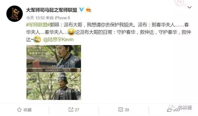 三是迎合。上文中提到,本剧中充斥着大量的、历史剧中不该有的卡通化、漫画化、生活戏和喜剧元素,尽管历史剧观众群体不愿见到,但不可否认的是,这些才是目前网络上的主流。当我们翻开这部剧的官博时会看到,官博一直在拿这些东西作为噱头来营销,比如上文中提到的汲布和司马懿之间的关系,官博也拿这件事说事以期获得网络群体的喜爱。同时张春华的行为尽管「累赘」,但也贴合了当下女权意识的兴起。