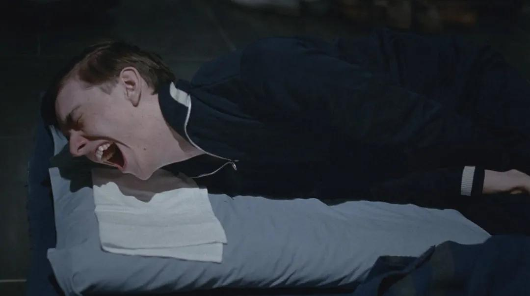 那一幕是这样展开的:一位美国心理学家进入机构测评受试青年的心理。那群青年此时已成为一个充斥着极端思想的光头团伙,早就看不惯这个美国人,想把他骗到猪圈和他“玩玩”。最后因为餐厅工作的女伴的阻止,似乎没有侵犯成功,只是把他吓到了。
