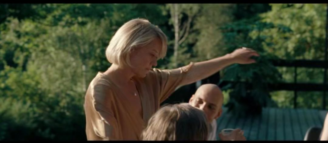 最后一部分始于女儿们的派对。Gustav在后院看到Anne时从后面环住她开始亲吻她的脖颈,却被Lina撞个正着。被Anne由于羞愧和惊慌而愤怒甩开的Gustav开始了一个小孩子面对突如其来的不满应有的反应:爬到树上大吵大闹,疯疯癫癫,似威胁,似引人注意。Anne开始慌了,剧情急转直下。Lina不断表示这件事让她感到恶心,她会告诉Peter,每一个来自Lina的未接来电都在考验Anne的运气。Gustav这边呢,你可以轻易地得到一个孩子,但你却无法控制他们。心神不宁地等待了几天后,Anne被从露营回来的Peter质问是否跟自己的儿子发生了关系。不过一两秒钟的时间,好像过了一个世纪一样漫长。Anne眼含泪水,开始了她疯狂的自我保护程序。接下来的事情都非常手段高明以及顺理成章了:给Gustav泼脏水,让他失去诚信;同时利用Peter的愚懦和他与Gustav之间的隔阂,进一步孤立Gustav;转移矛盾点至自己的后妈身份。Gustav从Anne的欲望机器变成了一个恶性肿瘤,会在夜半从寄宿学校跑回家里敲门要惊醒熟睡的Peter、让Anne家庭破碎、名誉扫地的巨大生存威胁。掌控一切、绝对正确的Anne此时战斗力全开,不费什么力气就间接地置Gustav于死地。虽然Gustav死后Anne由于内心复杂的情绪痛哭,但我倾向于认为她有那么一部分念头一定是松了一口气,因为死无对证,一了百了。