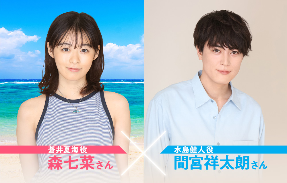 关于这次的角色,在现在的阶段打算怎么演绎呢?n==森七菜:我想不要太过于强调自己的表现,让观众看到一个在海边努力生活的女孩的真实的美丽。她虽然有缺点,但是有着坚强的生存力和美好的一面,能够讲述出美丽事物的人。我希望能够表现出这些魅力。n==间宫祥太朗:我和制作人以及导演事先已经谈过了,因为这是一部比较直接的恋爱故事,所以我希望能够自然地展现角色,不要过于强调表现。我希望能够表现出与夏海等海边居民相遇后的变化。