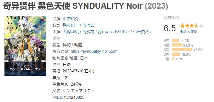 2024年3月被万代收购后,也依旧致力于为观众提供优秀的动画作品。但是8bit著名的作品都是轻小说、漫改动画,因此被指明制作《SYNDUALITY:Noir》这样一部原创动画的时候,我相信制作组还是有些汗颜的。