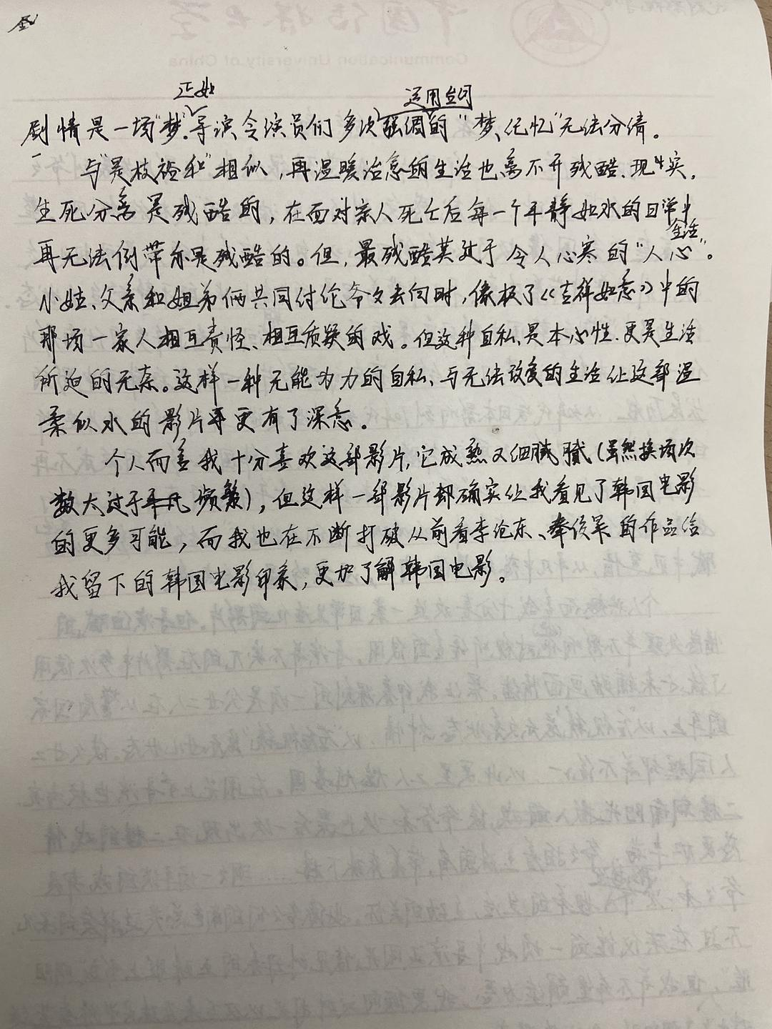 这是韩国电影研究课的结课电影。还挺可惜的,这么快就结束了。