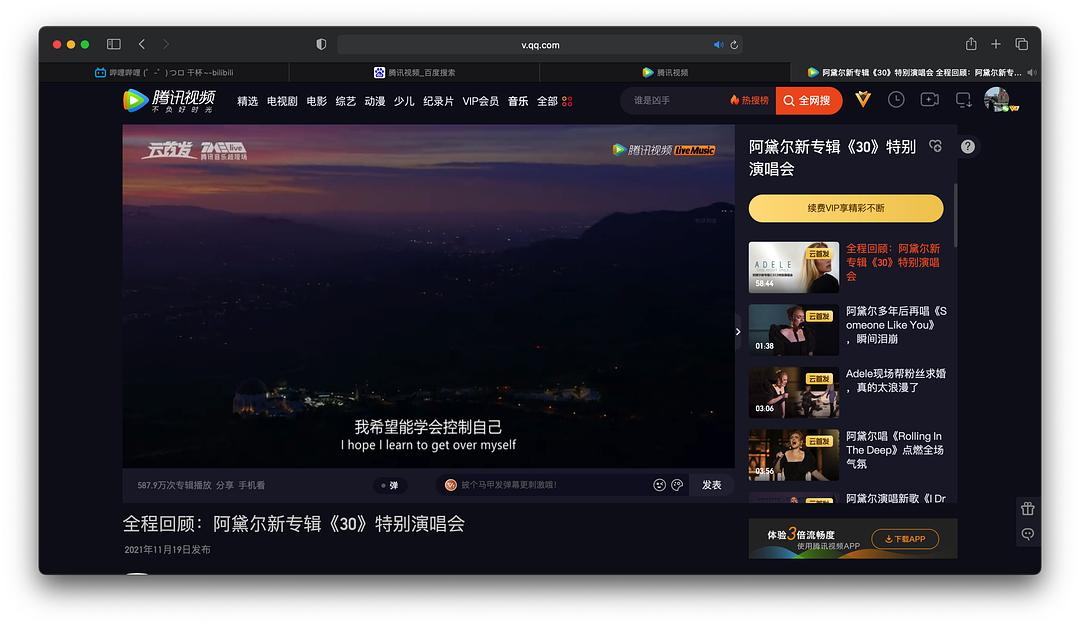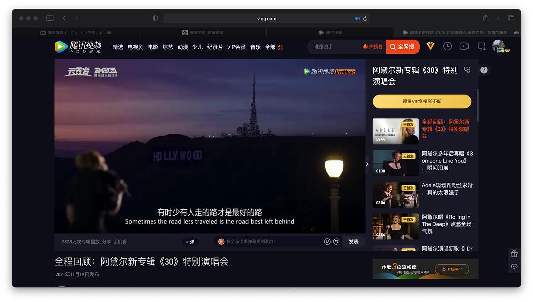 没想到夜里莫名情绪泛滥、睡不着……由着搜Adele 30里的一首歌、点开了一个Apple对她的访谈、然后听到里面说到她在山顶的复出演唱会……一步接一步,发现了这个Concert。