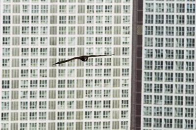 后来我们找到了找红隼的捷径:不是漫无目的地空等,而是跟随着它的叫声找。就这样,在CBD一栋楼的29楼找到了一个红隼窝,但是没想到,机位又受到了限制。