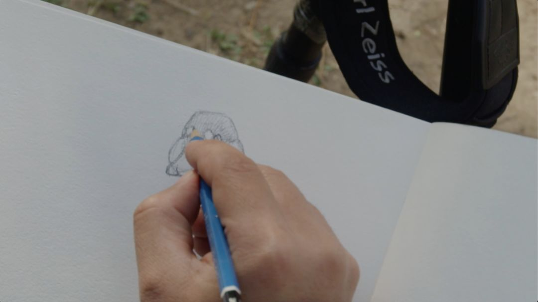 丑鸭的故事,也是跨年完成的。第一年,丑鸭来到北京的时候,我们没拍到给丑鸭画科学插画的张瑜老师,第二年,我们拍了张瑜老师在元大都遗址公园的水边画丑鸭,但是水里其实已经没有丑鸭了。