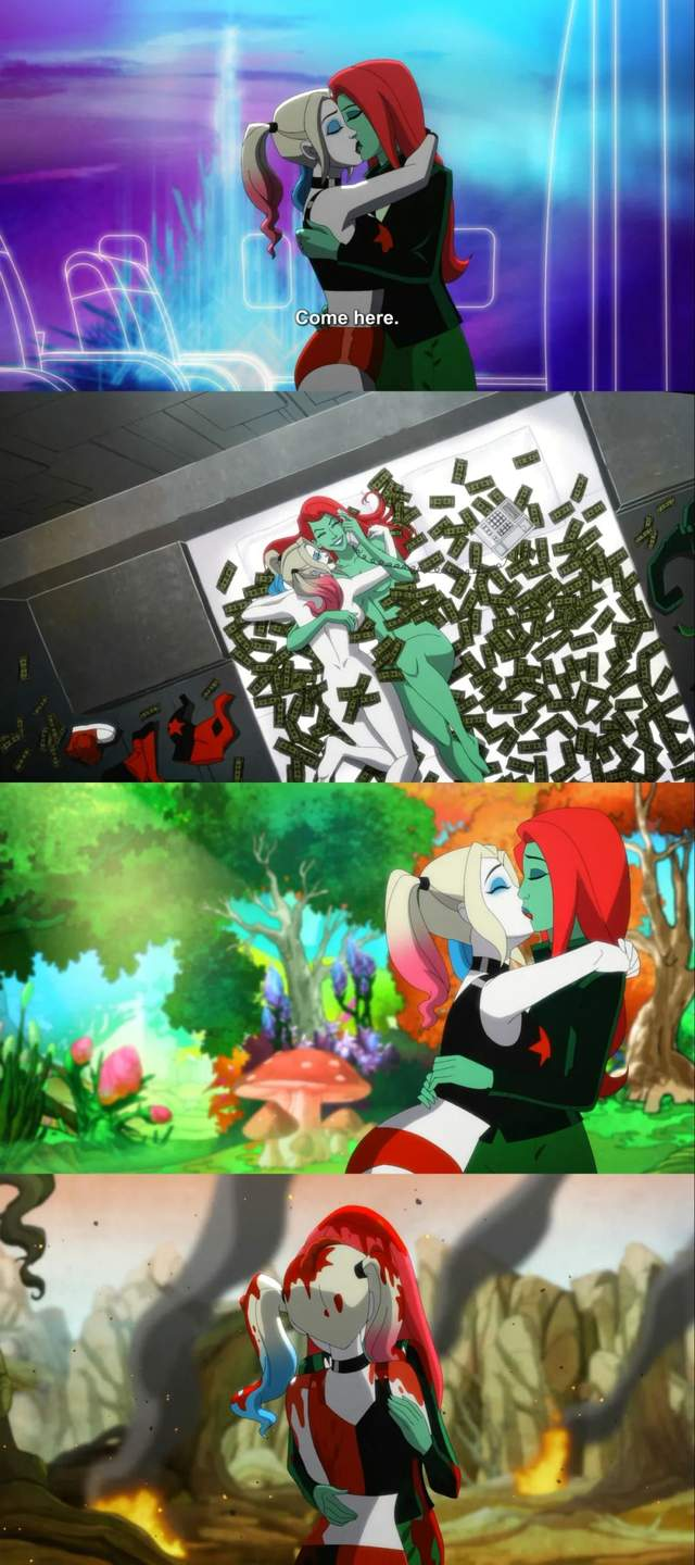 到了第三部,作者还给这对CP正式命名“毒哈”Harlivy,极大程度的满足了要磕CP的观众们。而且一开场就上演了哈莉和艾薇的“有色电影”。