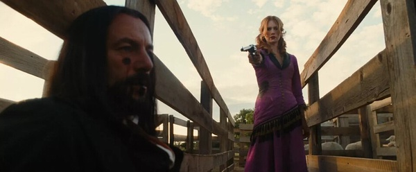 看惯了复仇的艰难曲折,生死之间的回合无数,死去又活来,你倒惊异于电影的简单了——该死则死,一枪毙命,想痛快,在尸体上再补一枪。这便是1886年新墨西哥州的西部,蛮荒之地,衍生出的蛮荒剧情。