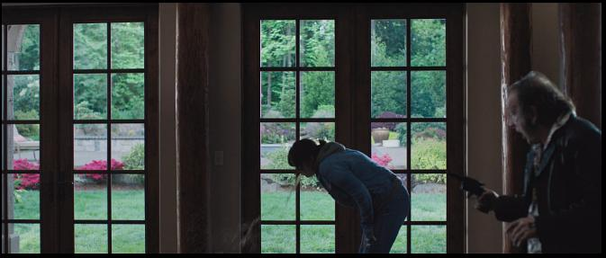 当报警后失望的露丝表达激愤时,我们以为她在向亲密老友倾诉,镜头一转却是一脸懵懂的朋友小女儿。去旧货店找到银器抱起就走,和孱弱老店主争执时,露丝的手指竟然被掰折;盗窃团伙林中碰头好似邪教组织,然而他们也是不堪一击的:头目马歇尔找壮年帮伙买枪,嘴上占便宜结果被揍一拳,直接把假牙打飞。貌似弱者却有着突如其来的杀伤力,强装厉害可照样遵循实力的食物链,黑色幽默在错位笑果中油然而生。
