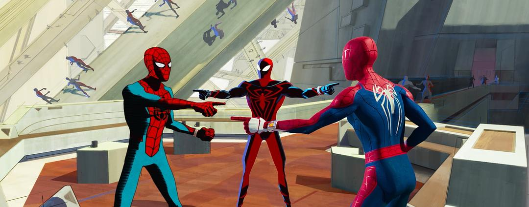 对于新观众来说主线的话更是扯淡,就是就有一种感觉,编剧有很多的任务,其中包括这部必须出现这么多个蜘蛛侠、蜘蛛侠之间必须产生内斗等,这是他写这个剧本的前提,也是这个这个电影的很大一个卖点。