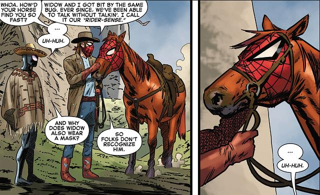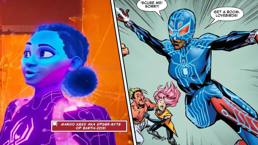 《纵横宇宙》中的骑士蜘蛛侠似乎是一个女性角色,但漫画中则是地球-71004的彼得·帕克,其背后还有一段可歌可泣的童话故事。