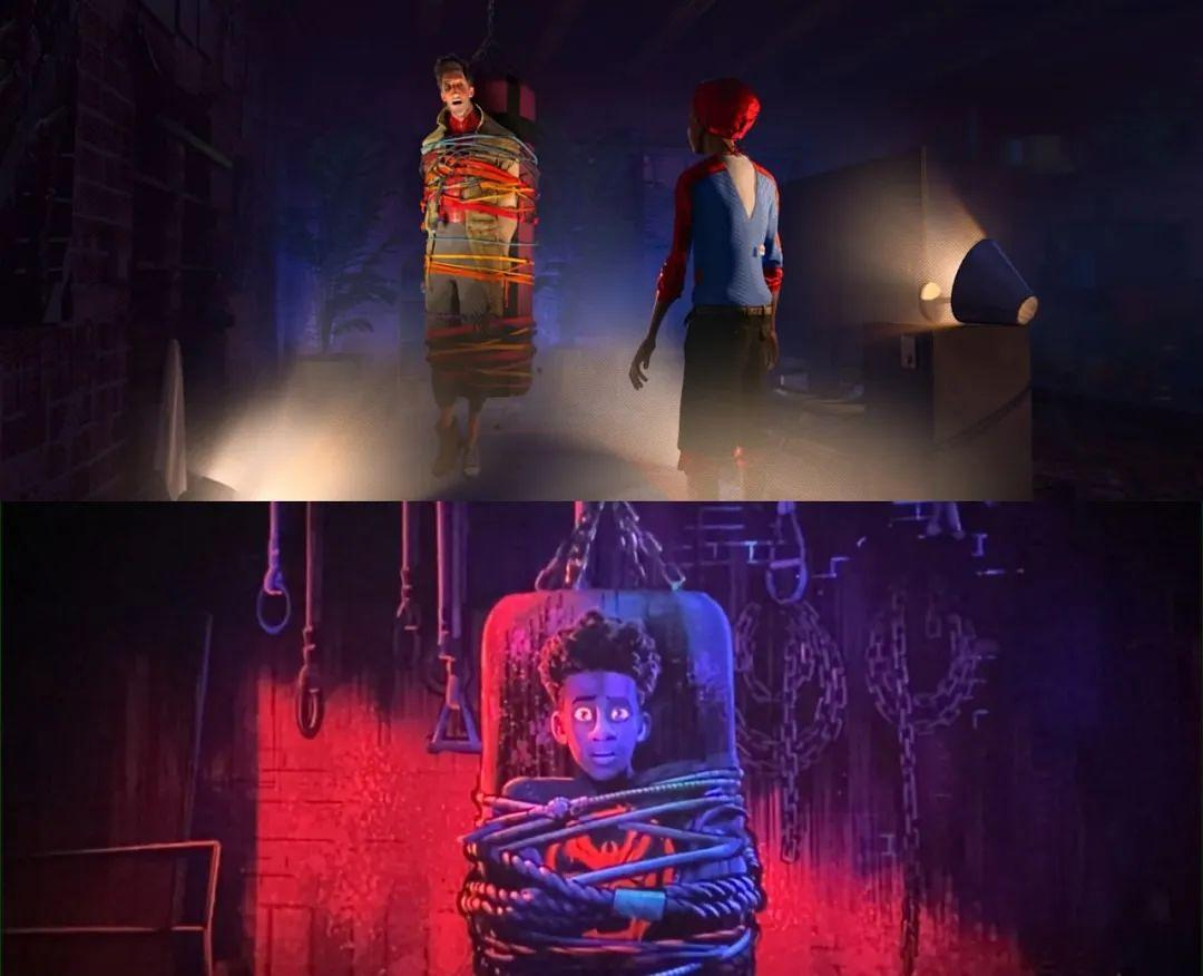 影片中迈尔斯和唐纳德同框的一幕,实际上是两代小黑蛛的世纪相遇!