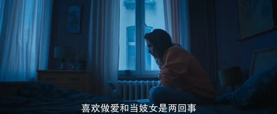 而当晚选择去见了Ian 是爱情的开始 下次约会的时候 她被问及职业的时候 有了几秒钟的迟疑 但是 随后还能自我肯定式的讲述自己的作家故事 转而言之就是 内心深处也有隐隐的不安 而男友显然难以接受 但是还是臣服于女主的魅力而自我说服 最终当女主在那段梦魇一样的强暴式服务之后 失魂落魄见到男主 他笨拙的温柔的准备好她家乡的餐点 将心捧给她的时候 她却难掩工作带来的冲击 失魂落魄想去洗澡 去冲刷掉侮辱与伤害 试图换一个人格完整健全地与男主相见的时候 发现 自己终究是难以游走日夜之间 此时男主也懂了 也发现自己真实的 难以忽略女友是pute的事实 双方对话不言阴暗 小心回避分手这样直白伤人的字眼 体面 温柔的说了再见 所以当女主进入浴室打开水龙头爆哭 给妈妈打电话说不好的时候太令人心碎了