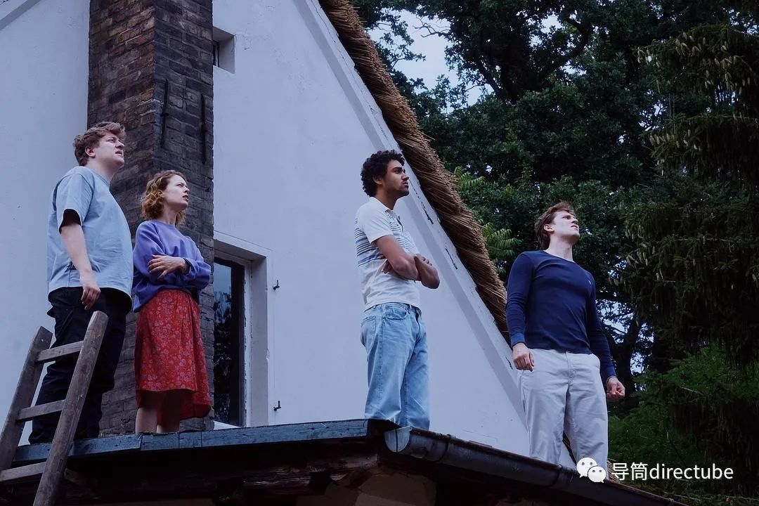 影片的场景像迷你版的《忧郁症》,在德国北部阿伦斯霍普附近的波罗的海度假屋,四个年轻人观望着远处的红色天空,灾难正在降临。