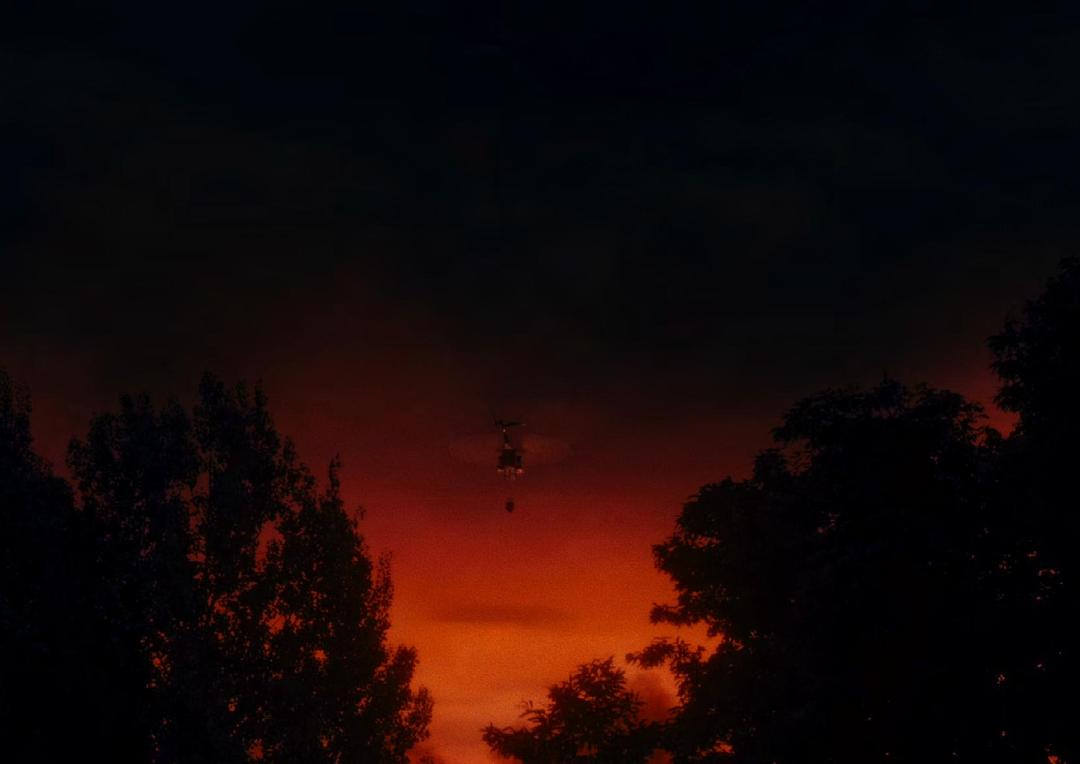就像克里斯蒂安·佩措尔德导演的众多电影一样,《红色天空》是一个美丽女人与望穿秋水的男人陷入命运旋涡的故事。《过境》(Transit ,2018)和《温蒂尼》(Undine,2022)诉诸历史来诱捕他们的恋人,《红色天空》则牢牢植根于当下,这是佩措尔德“元素三部曲”中的第二部(第一部是《温蒂尼》,讲述了一个水精灵和工业潜水员之间的爱情故事)。这部电影将年轻的主角们——两名艺术工作者和两名服务员——放置于环境衰溃的边缘,一个被野火损毁的森林里。