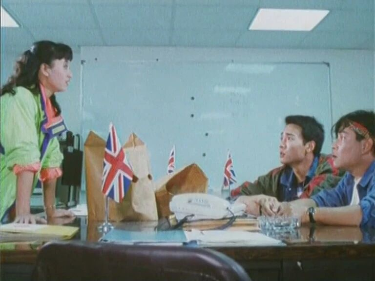 曾志伟、午马、林威、成奎安、太保妥妥的香港一流商业大片主流配角,他们都出现在《过街老虎》这部影片中,按理来说主角应该是成龙、张学友、周星驰等明星大腕,结果资方起用的是牙齿没有整的小李探花焦恩俊和整了牙齿,但感觉很奇怪,长相清秀的林品筠,前者后来在小荧幕大火,后者泯然众人矣。本片讲述老掉牙的江湖恩怨,大傻在给儿子过生日的当天被手下带人灭门,林威抱走了孩子后失散,镜头一转孤儿院长大的焦恩俊和哥们在街头卖糖炒栗子,生活清贫但很快乐,这里明显可以看出是在台湾街头拍摄,夹杂梦露式浪漫,动作杂耍等观众喜闻乐见的场景。卖糖炒栗子要躲警察(港警打扮),买家给的钞票看起来都是台币(绿色的),因为误会在警局中的桥段,编导为了展示香港味,每张桌子上都有一面英国小旗,群演也都一本正经的按照想象中、港片中的警察办公,服化道下了功夫,除了做的有点过,真没看出破绽。