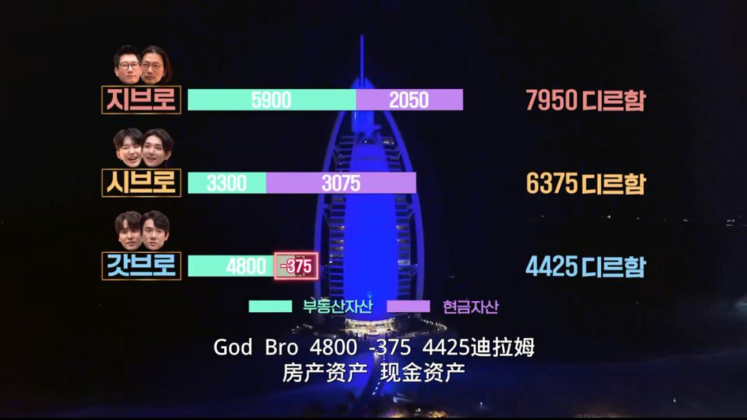 第一次游戏中,曺圭贤、柳演锡的God Bro组,抽中坐直升机穿越朱美拉棕榈岛、豪车全程接送的专属黄金路线,来到迪拜最为著名和神秘的帆船酒店,感受满是黄金装饰的“豪无人性”的迪拜风格。
