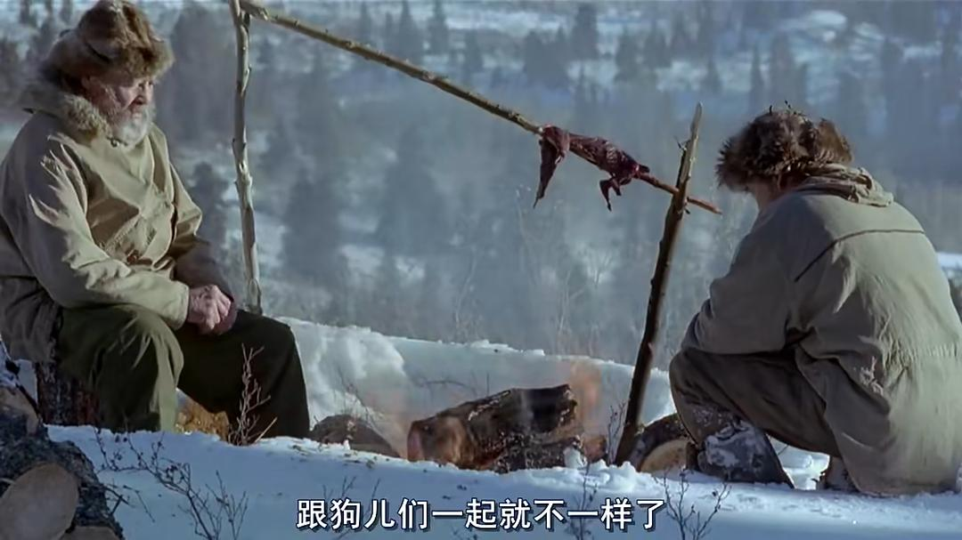 印象最深刻的还有诺曼的一群哈士奇猎犬,因为我真是爱狗,家里有一只四岁半的雪纳瑞,很活泼胆小的狗妹妹,看片的过程中我就和小伙伴揶揄说这是我见过最不逗比的二哈了,其实如果从小训练,二哈也是相当不错的工作犬,很有担当。冬天在雪地里驰骋全靠这群小伙伴们,无论面对灰熊还是狼群,它们都对主人不离不弃。诺曼带着他最喜欢的狗狗纳努克去镇子里采购,结果傻孩子在等待主人的过程中显露出二哈本性,去找流浪狗玩耍,结果被货车撞到,这是全片里最虐的一段了。后来他的老伙计送了十个月大的母狗阿巴什给他,一开始这只小家伙是被诺曼嫌弃的,但小家伙跟着诺曼打猎,拉雪橇,甚至在诺曼落入冰窟奄奄一息的时候领着一群惊慌失措的狗狗们掉回头救了了主人,这小姑娘真是干得漂亮,也赢得了诺曼的溺爱和狗群的尊重爱戴。