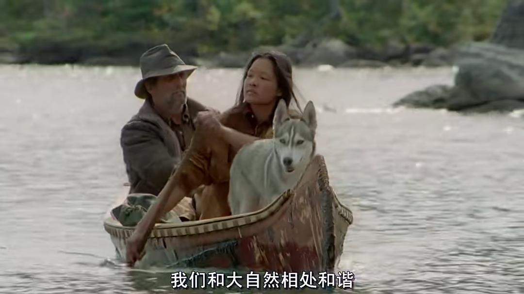 电影里,诺曼温德最迷人的地方是他在我们看起来如此危险和艰苦的环境里,那么自然而智慧的生活着,甚至是充满诗意的生活着。 他从松树上取下凝结的松脂融化后来修补他的独木船,他凿开坚硬的冰层用最原始的方法钓鱼,他熟练的驾着雪橇穿行于茫茫雪原,他用斧子伐木自己盖起过冬的房子,一切都显得那么从容自然优雅,就好像都市人熟练的在地铁里刷卡通过一样,显然他做的所有远比刷卡进站困难许多。