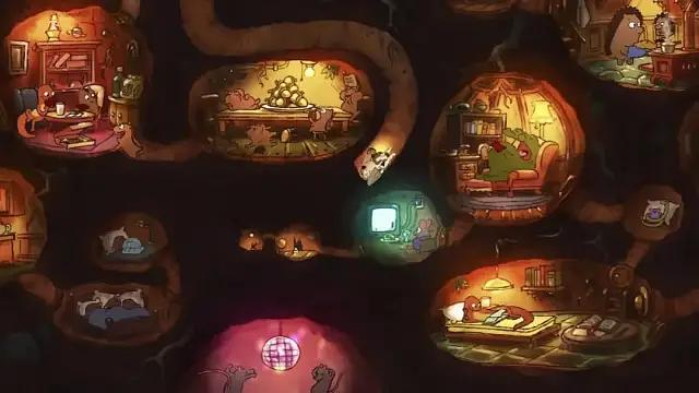 这时另一个“凿壁”出现的了一只小老鼠,它兴奋的展示出它的规划图,看起来是更加的豪华,而且它的家人也更多,有着好几个洞穴。