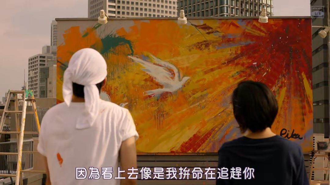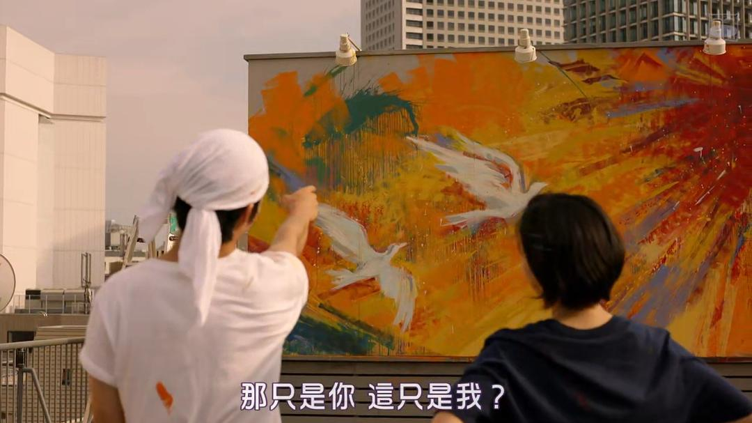 第二天莉香让完治和她一起请假翘班,买了油漆,粉刷楼顶的广告牌。两只鸽子在灿烂热烈的阳光中翱翔。完治说莉香是前头那只,他是在后头拼命追赶的那只,透露内心一点点自卑。而莉香表示两只鸽子只是在朝一个方向飞。