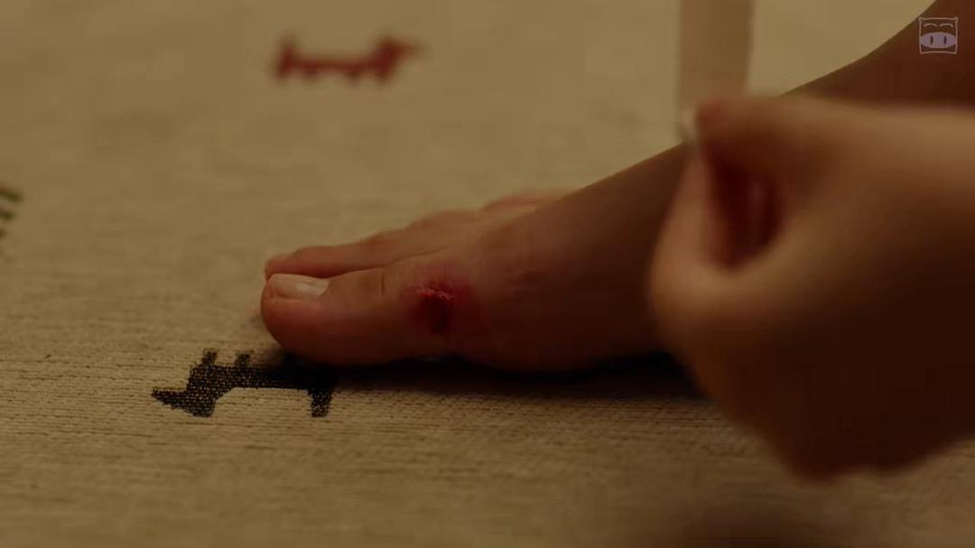 回到家,里美脱下为了去医院见三上特意穿的漂亮的红色高跟鞋。鞋子好看但是特别磨脚,脱下鞋,里美脚上一片血肉模糊。大约开保时捷、住东京市区豪宅的富家公子三上也和这双鞋一样。看上去是完美的对象,却令人伤痕累累,让人放松舒服的对象(比如完治)未必光鲜夺目。