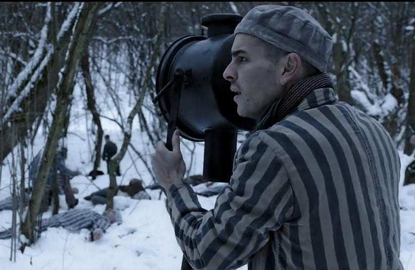 该片给我留下深刻印象的是影片中诸多的黑色幽默细节。一个试图将纳粹罪证带出集中营的囚犯被处以绞刑,一个动作夸张滑稽的指挥带领一帮乐师开路,把死囚拉到操场正中。第一次行刑,绳太细勒断了,没吊死,只能重新奏乐,再吊一次。集中营全部200多名囚犯被要求从刑毕的尸体下一一经过,抬头观看。这个镜头足足有5分钟,通过每一双瞳眸,窥见每一名囚犯面对同类死亡的心理。