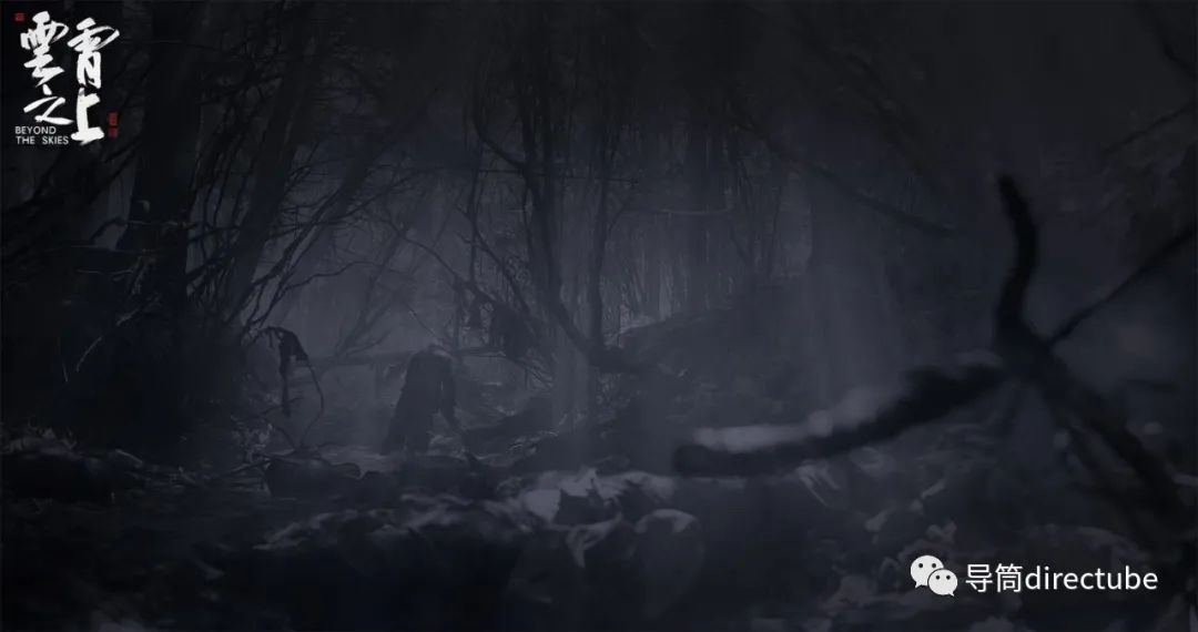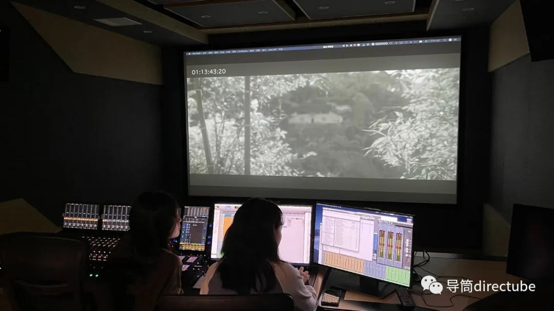 声音整个制作加音乐周期一个月!(按这个体量至少应该三个月)其实我发现我们同样在完成一个不可能的任务,像极了这部电影。国美的老师同学们如同电影里的那些战士,废寝忘食迎头而上,加上疫情的不便,我是两次从北京到杭州,再到上海的SMG的杜比全景声去混录,像我正常这样的院线混录最少也得20天,幸好大量ADR的工作徐晶晶老师提前完成,不然根本不可能短短一个月完成,我们用的音轨达到500左右了,为了还原地域色彩感,配音演员也是浙江各个地方,也是为了体现挺进师来自江浙五湖四海,那些默默无名的小人物,所以光从ADR来而言,其实是个大工程。我记得刘老师为了这种质感,非常严谨考究每种当地的方言,就打鱼妹来说,换了好几个人和音色去考量抉择,而且专门还请丽水话的老师指导,尽力口语化,力求达到本土语言的纯粹。 4.环境 环境声的丰满,使人身临其境 我一直在做电影声音中会强调环境声的重要性,因为环境声的丰满决定了电影感,而电影的画面有沉浸感、立体感,除了画面外,环境声的丰满和层次是实现这种空间感、纵深感、方位感的最重要的呈现方式。 《云霄之上》在这个层面其实难度是很大的,首先以黑白、非黑白的画面呈现出来的影像,它从场景层面看似雷同,比如丛林、溶洞、芦苇地、小镇、破庙、河流、要塞、田地、幻境等等场景,因为你的画面的色彩度明暗度的不同,从声音层面如何塑造场景,如何塑造气氛其实是一个很大的挑战。