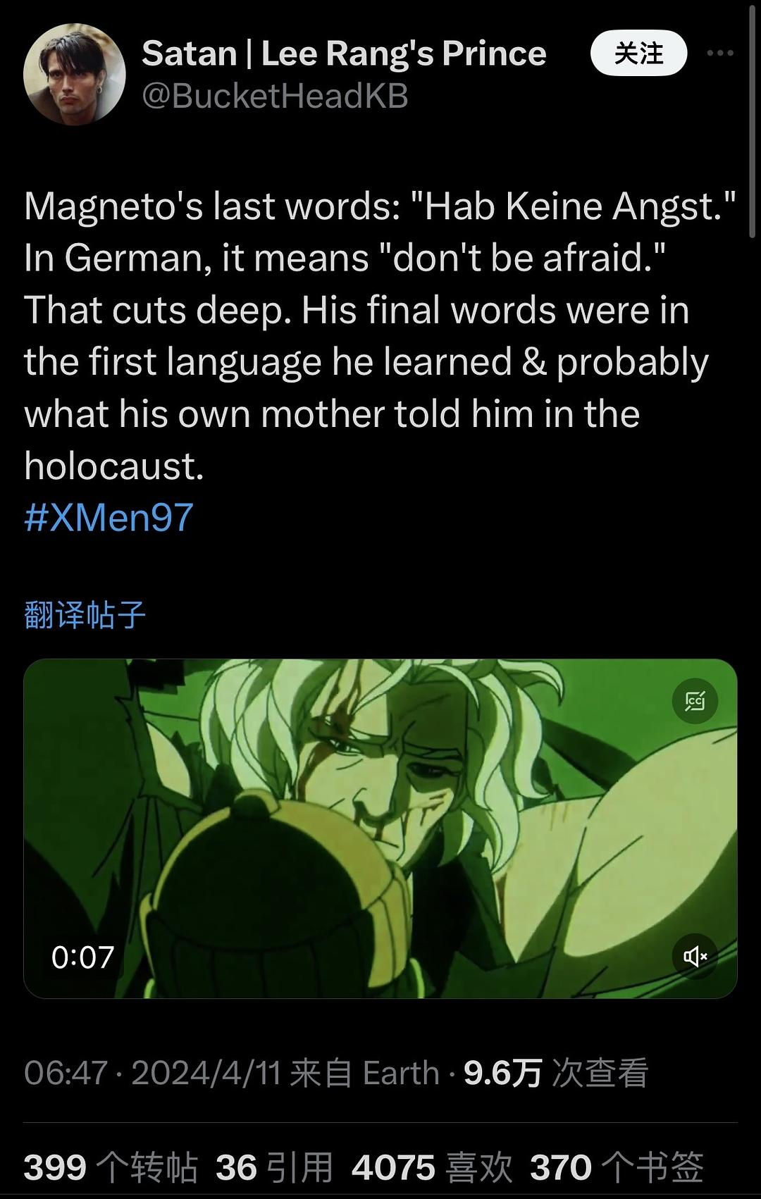 老万都死了,我想过他翻云覆雨霸总上身气场全开搅动天地就是没想过他会死。而且死之前还在拼命守护变种人,还用自己的母语说出了最后一句遗言(让一个小孩别怕)oshit