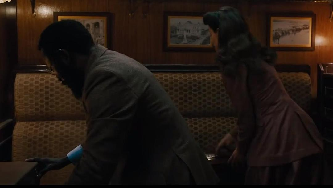 剧情的“啊?”太多太多了,完全说不过来。我说说剪辑的问题。本片的剪辑有着重大缺陷。有不少应该剪掉的镜头却保留了。比如这个,女间谍转身坐下的全过程保留,你告诉我这一段的意义在哪里。我们可怜的黑人小哥一直要保持同一个姿势等着她坐下,就这么干等着。这段戏及之后的整场戏,剪辑节奏没有跟上爵士乐的鼓点。所有的剪辑点都慢了一拍,这可是盖里奇的电影。我再说一遍,这是盖里奇的电影。这种慢一拍直接让我生理不适了!每一个剪辑点都没有落在重音上,这也太让人难受了,感觉自己心跳掉了一拍。
