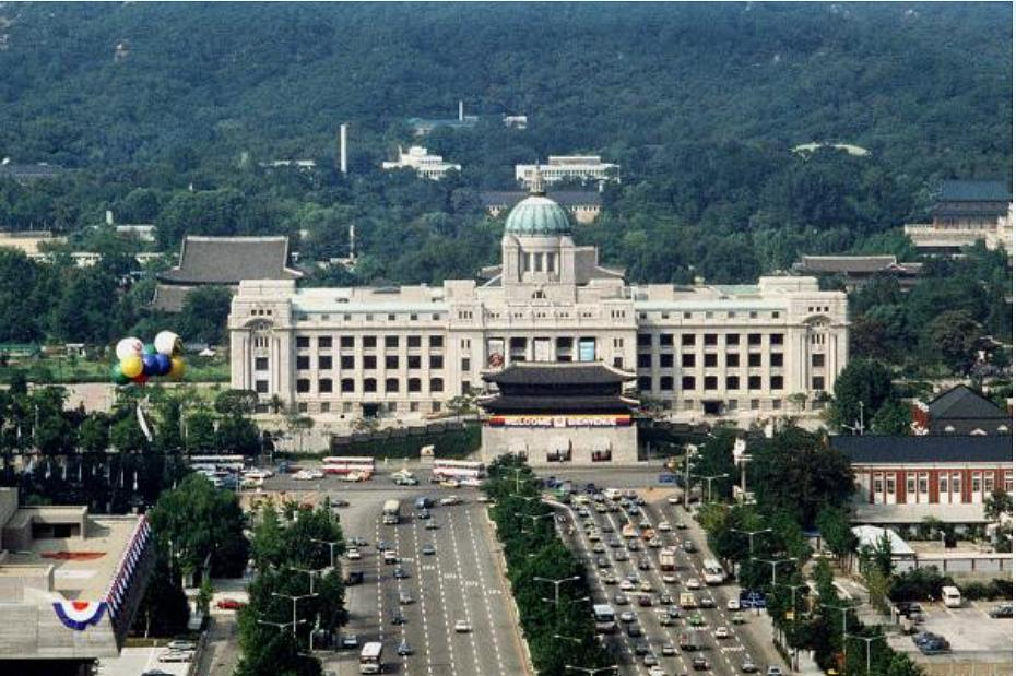 前半程确实如影评人所透露的那样跟亲日派及后代有着千丝万缕的关系,甚至一些细节的安排也透露出导演的良苦用心:委托人下榻的酒店应该是市厅边上The Plaza Seoul,这家酒店能观赏市厅周围的夜景,价格也体现委托人身份,但更为关键的一点是,被祖先附体后,他向着早已不存在的日据时期朝鲜总督府行了整套军礼。这幢象征着35年被殖民的耻辱历史的建筑,在1995年被金泳三总统下令拆除。拆除算是历史文物的建筑在当时也遭到不少人的反对,但大部分国民同意的原因中有一个是认为这栋日本人的建筑物挡住了来自北岳山向首都输送的“气”。