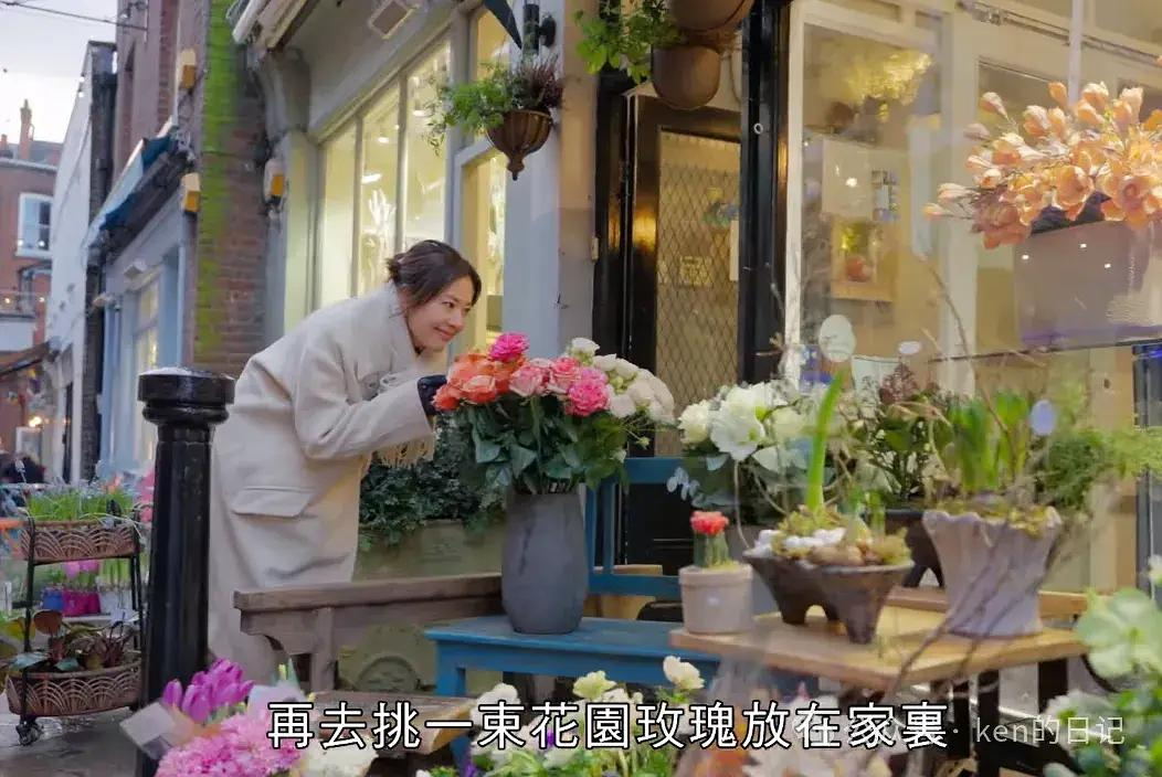 唐诗咏这种身家的人,也不是什么都买,走在很有电影感觉的街边,沿边商店的东西也只是说打卡就好了,难道都要买回去吗,要钱的。你看,唐诗咏是不是很真实,她的身家,买杯拿铁,买束花没问题啊,但人家说啦,来伦敦这里,打个卡就好啦,都是钱来的。我觉得也对,我们平时出去旅游的话,真的就拍照打卡就好了啦。有些时候真的不需要这个地方的东西一定要买回去啊什么的。