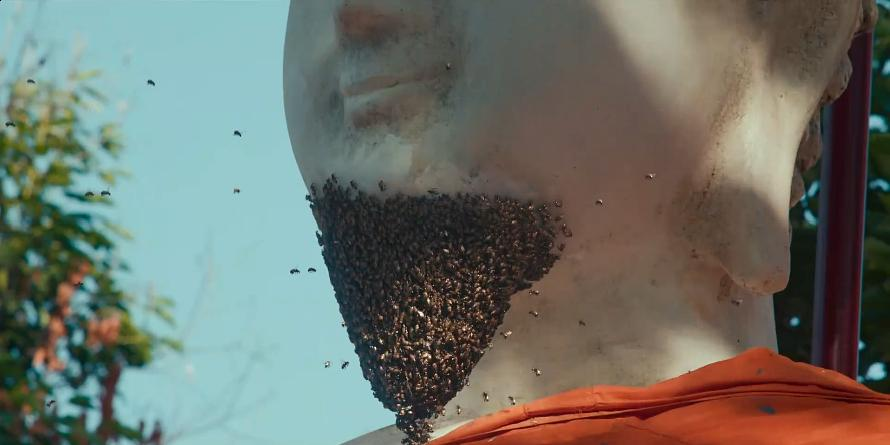 庙里的佛像被蜜蜂寄生,就是不清除,让下巴长蜂巢的佛像成为本寺标志,后期开发主题护身符,这叫差异化。