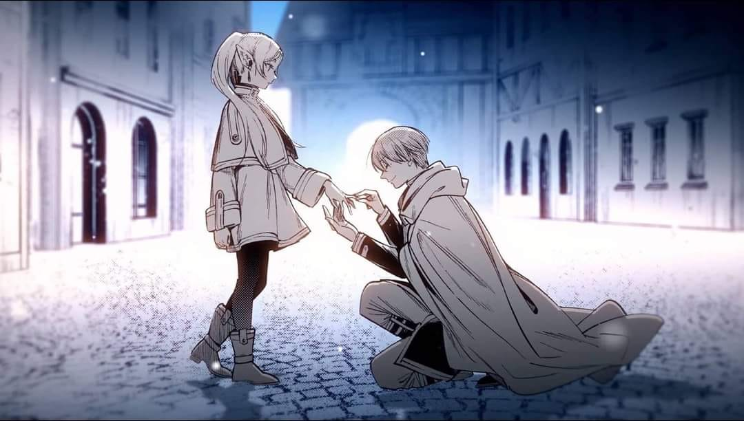 最后以感情线的角度看一看芙莉莲和辛美尔的关系,作者在漫画里目前没有任何对他们恋爱感觉的直接表达,但是 纯爱勇者x迟钝精灵 的感觉还是非常明显,就权且当友情来磕。芙莉莲对辛美尔总好像是一种想要靠近了解却又抓不住的存在,辛美尔似乎知道自己终归不过是芙莉莲漫长生命里的一小瞬间,所以他真的非常用心去了解和关心芙莉莲并把自己展现给芙莉莲,他对芙莉莲的短短十年的影响和改变,远超芙莉莲千年生活里其他所有人加起来对他的影响,即使是在死后,他仍然以回忆这种跨越时空的方式去与芙莉莲对话,他教会了芙莉莲以一种全新的视角和生活方式去了解世界和身边的人。辛美尔就以这样一种强烈但又温柔的方式永远的活在了芙莉莲的回忆和生活中点点滴滴里,即使是以挚友的感觉去看,他们的关系也是让人非常感动!