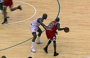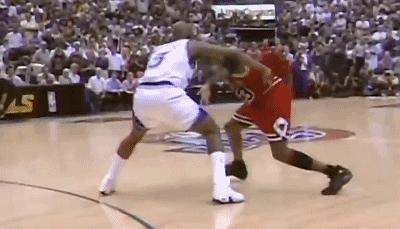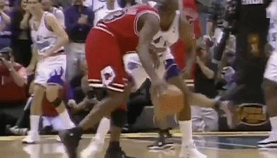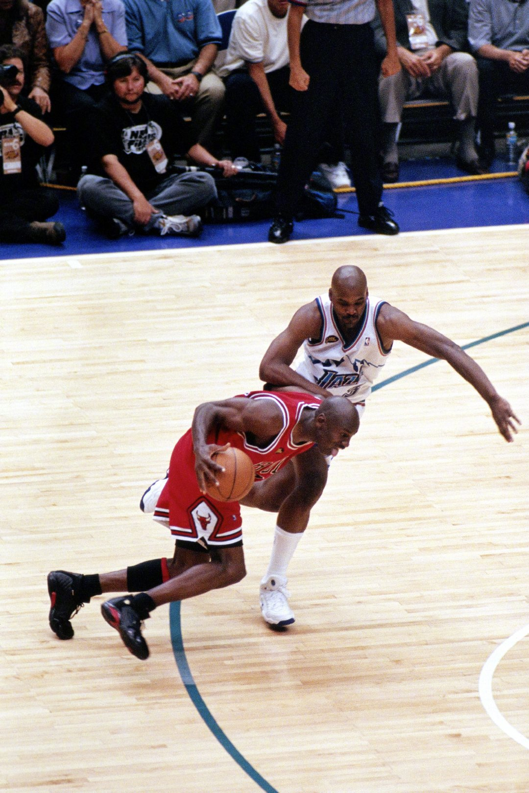 1998年NBA总决赛的第6场,比赛将近结束的时候,迈克尔·乔丹看到卡尔·马龙的护球出现了破绽,在那一瞬间出手抢断。