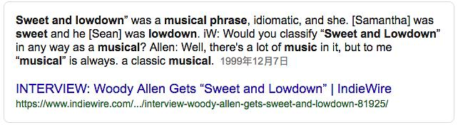 伍迪艾伦粉都知道他有多迷恋爵士乐,据他所说,拍这部电影的那八个月是他人生中最快乐的一段时光,因为天天都可以泡在jazz music里。所以这部”伪纪录片“其实是老头用来给全世界安利自己爱好的小广告。