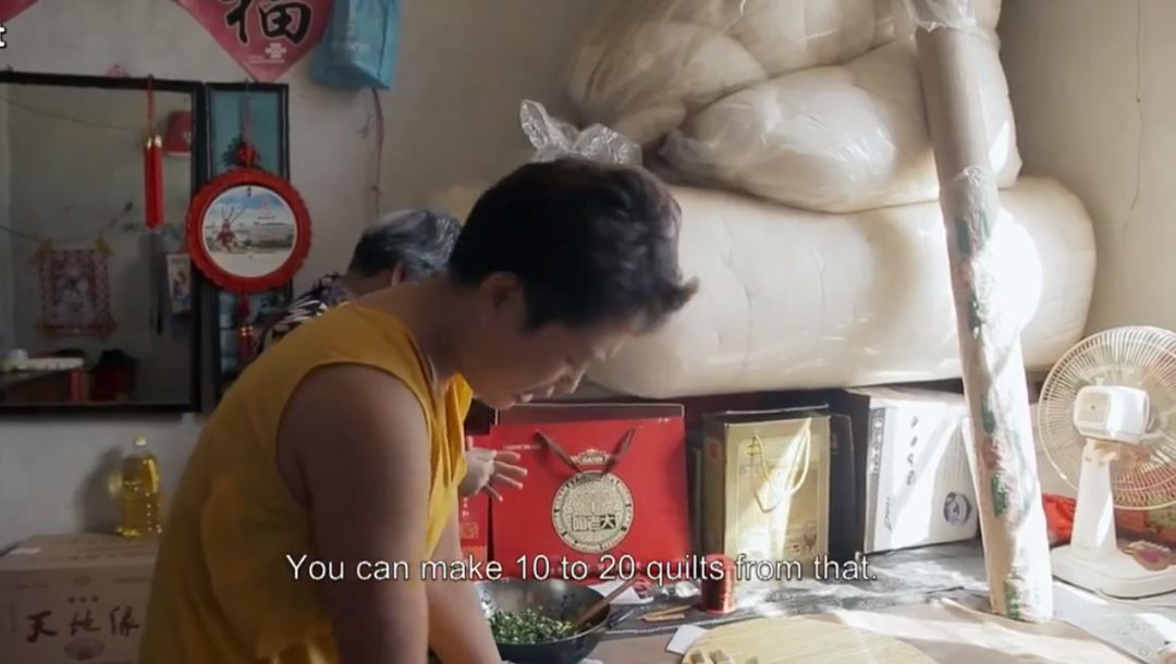 这一刻我觉得她的家庭是非常正常的,想必大家也会跟亲人这样吵架吧,这恰恰说明他们的关系是非常松弛的。随后镜头也展示了邱的母亲为她将来出嫁做被子准备的棉花,她跟妈妈一起亲切的包饺子拉家常,这是这个家庭的另一面啊。朴素的亲人们是无法用理论化的语言与你进行争辩的啊