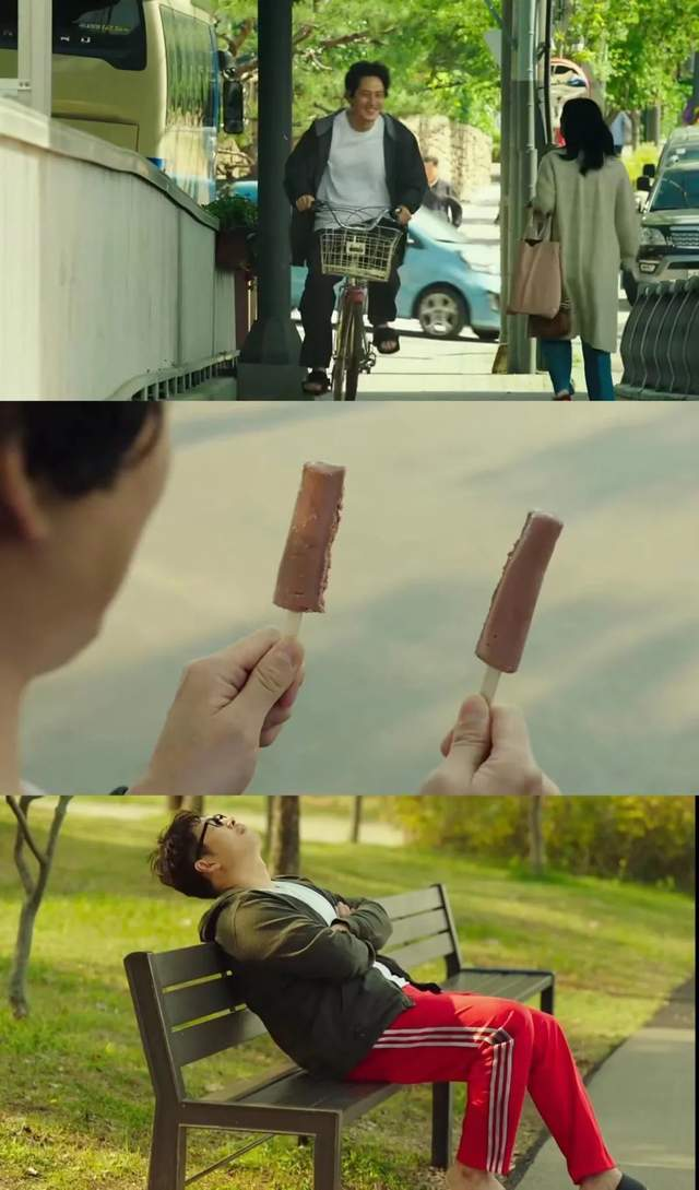 南金必把自己手中的冰淇淋一分为二,男人吃了他的冰淇淋后上了一辆豪车。