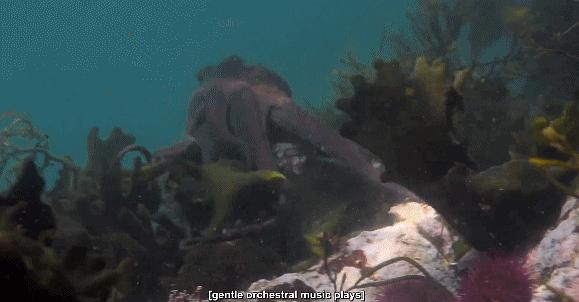 这只章鱼其实没什么特别,是海洋众生里的普通一个,独来独往,靠着各种伪装小心翼翼地活着。